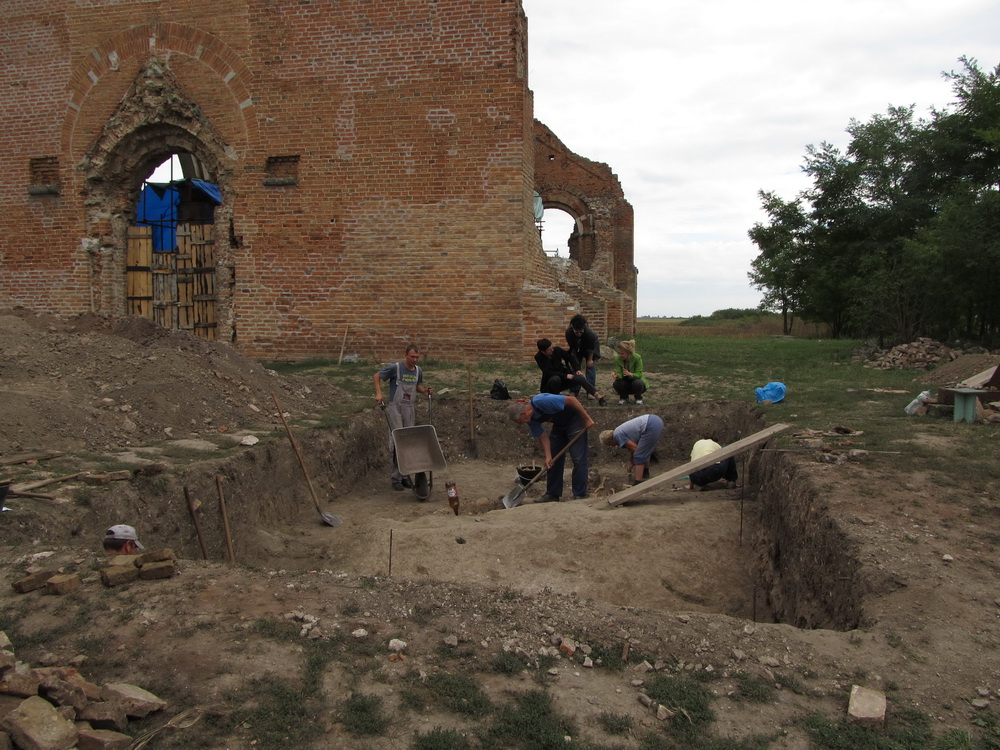 Nastavak arheoloških iskopavanja ispred crkve. Otvaranje sonde na mestu gde se pretpostavlja da se nalazila desna kula-kapija nekad ograđenog manastirskog kompleksa.