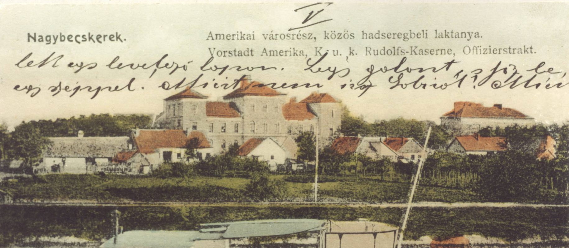 Fotografija, početak 20. veka. Zgrada štaba i ambulante desno. pogled sa Begeja